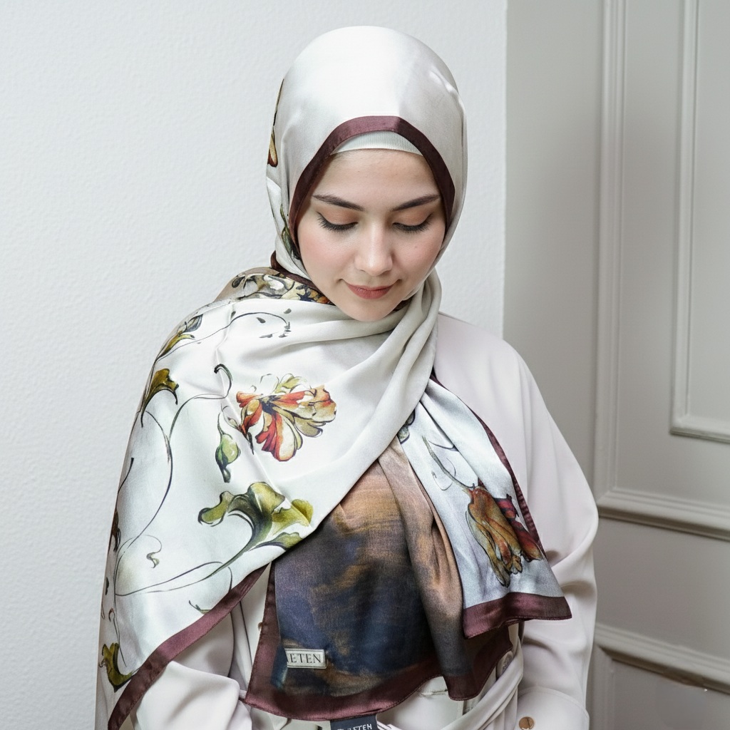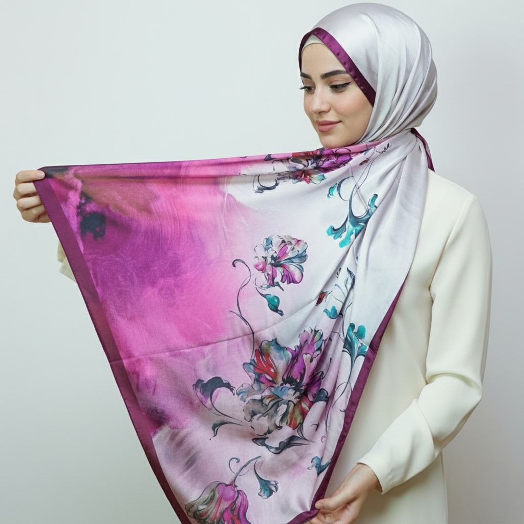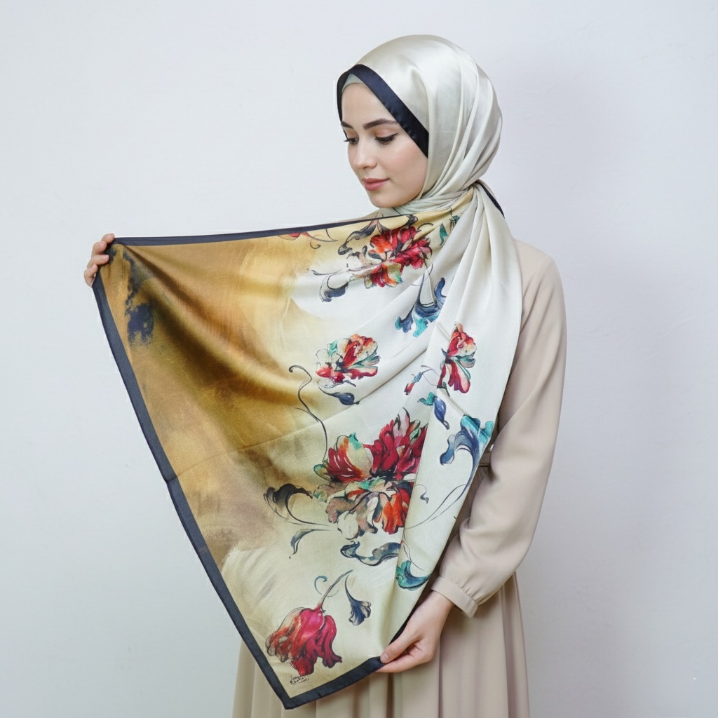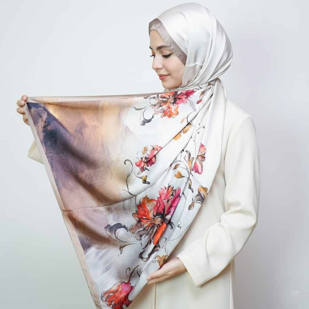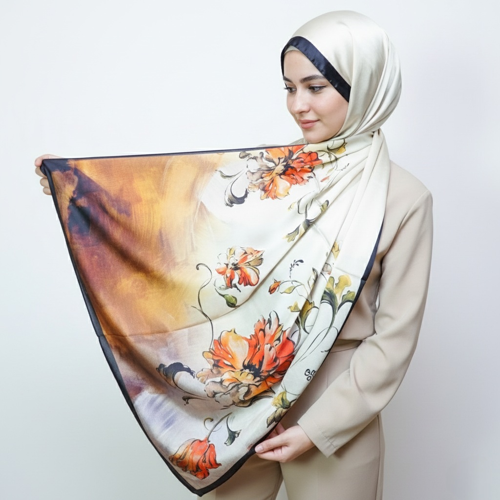 The satin finish offers a naturally elegant glow, while the silk core keeps the scarf light, breathable, and beautifully structured.