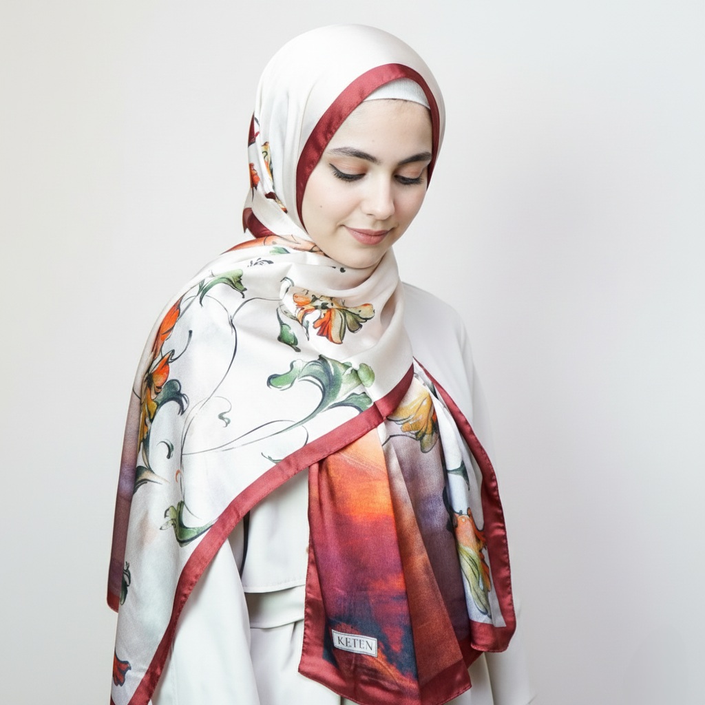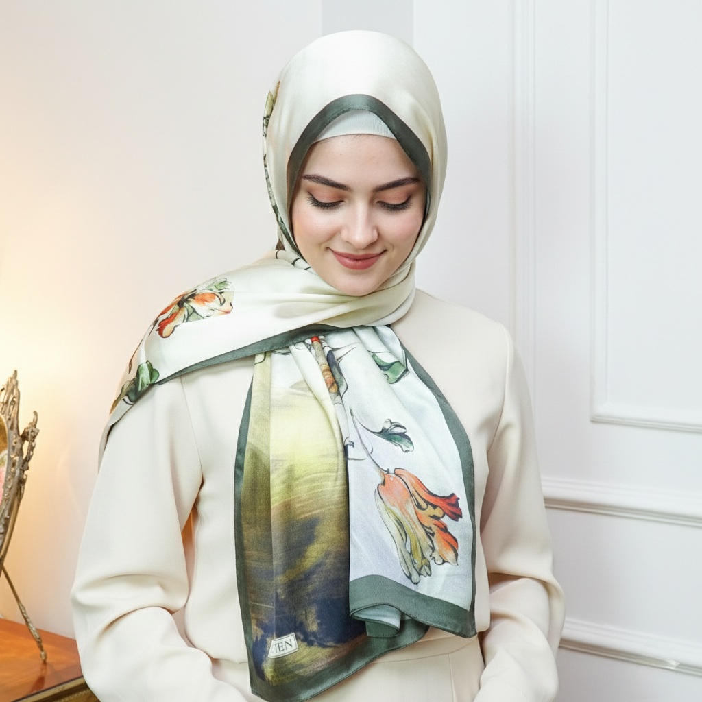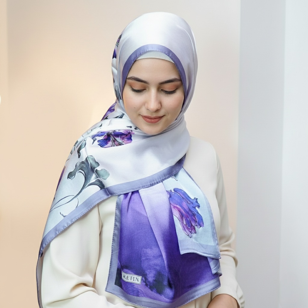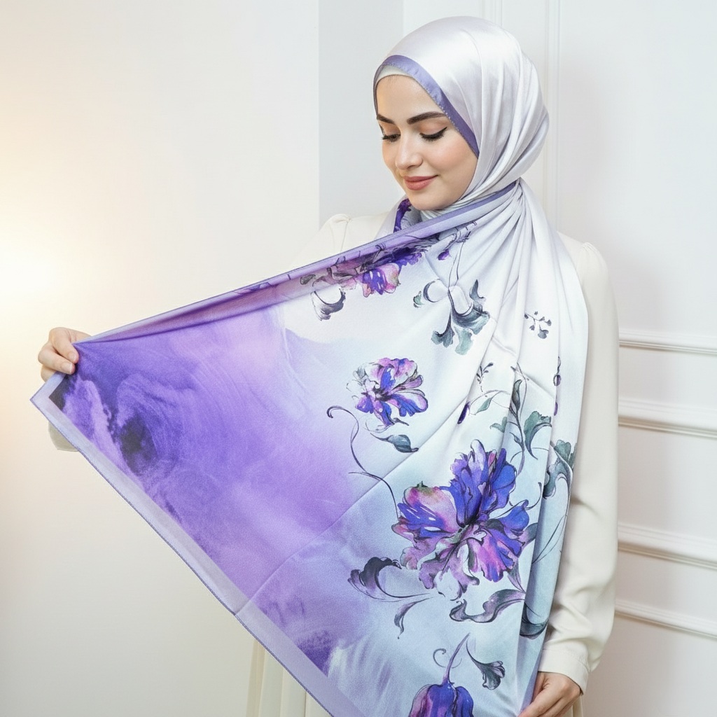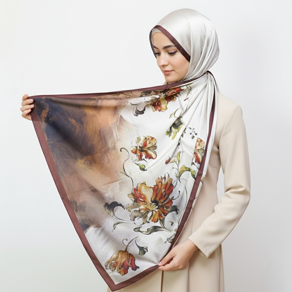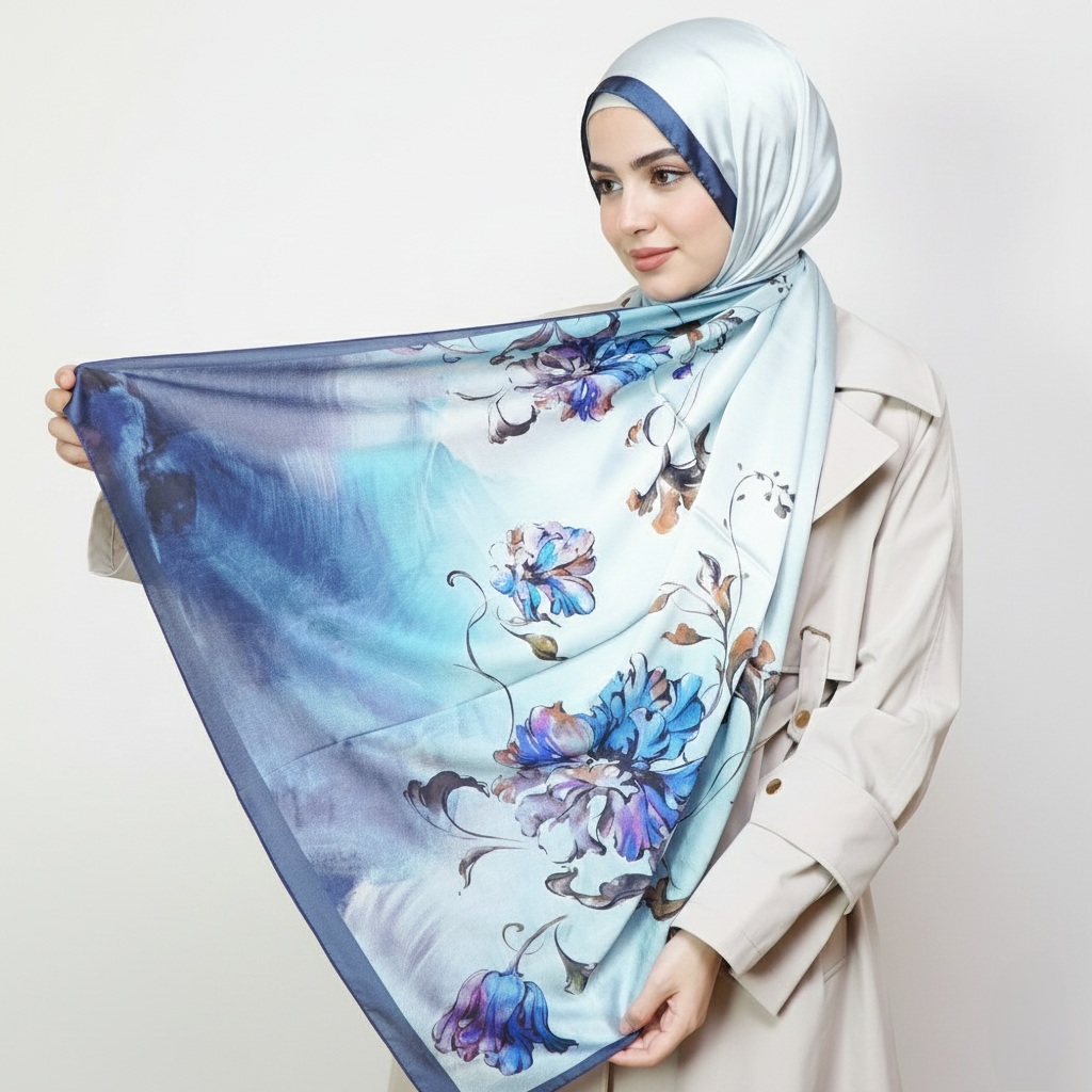 The satin finish offers a naturally elegant glow, while the silk core keeps the scarf light, breathable, and beautifully structured.