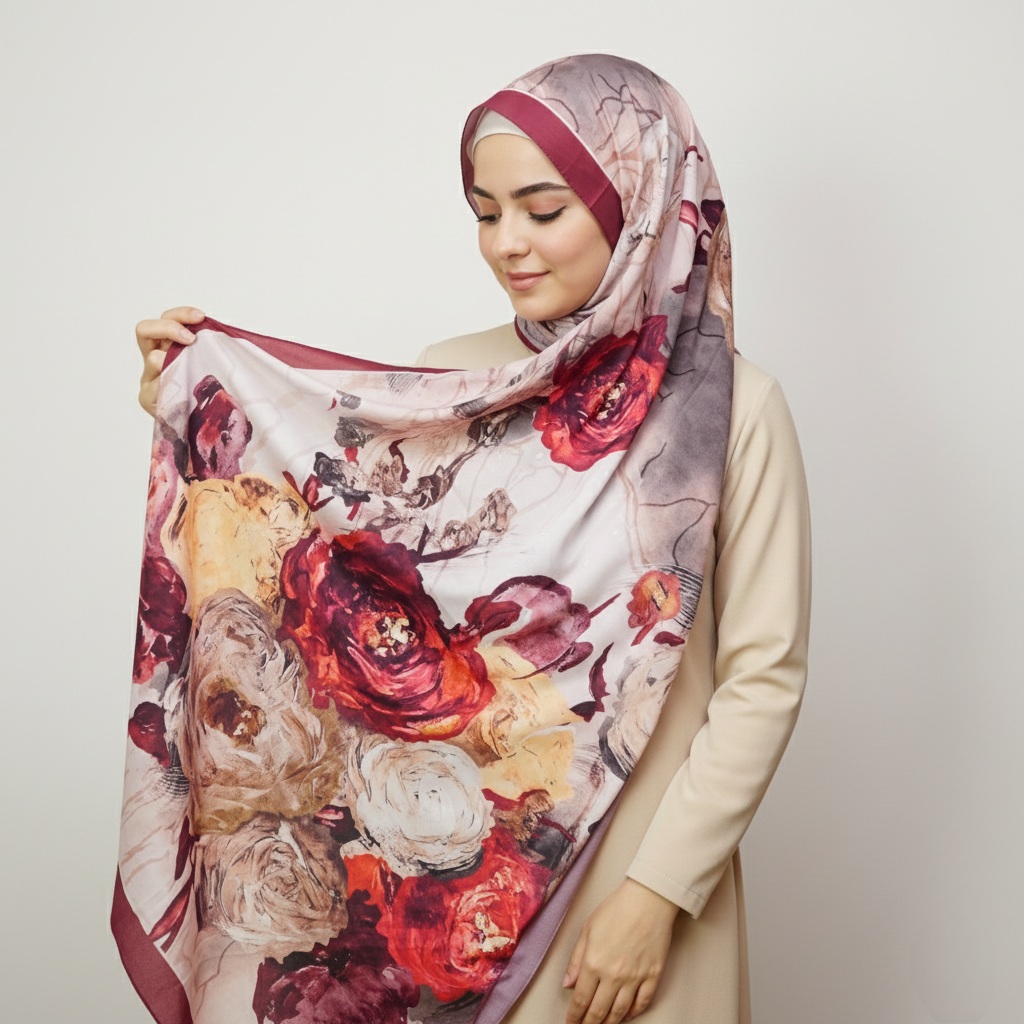 this hijab is designed for the modern woman on the go—it is durable, wrinkle-resistant, and retains its vibrant patterns wash after wash. It’s an ideal choice for daily wear, offering a polished look with minimal effort.